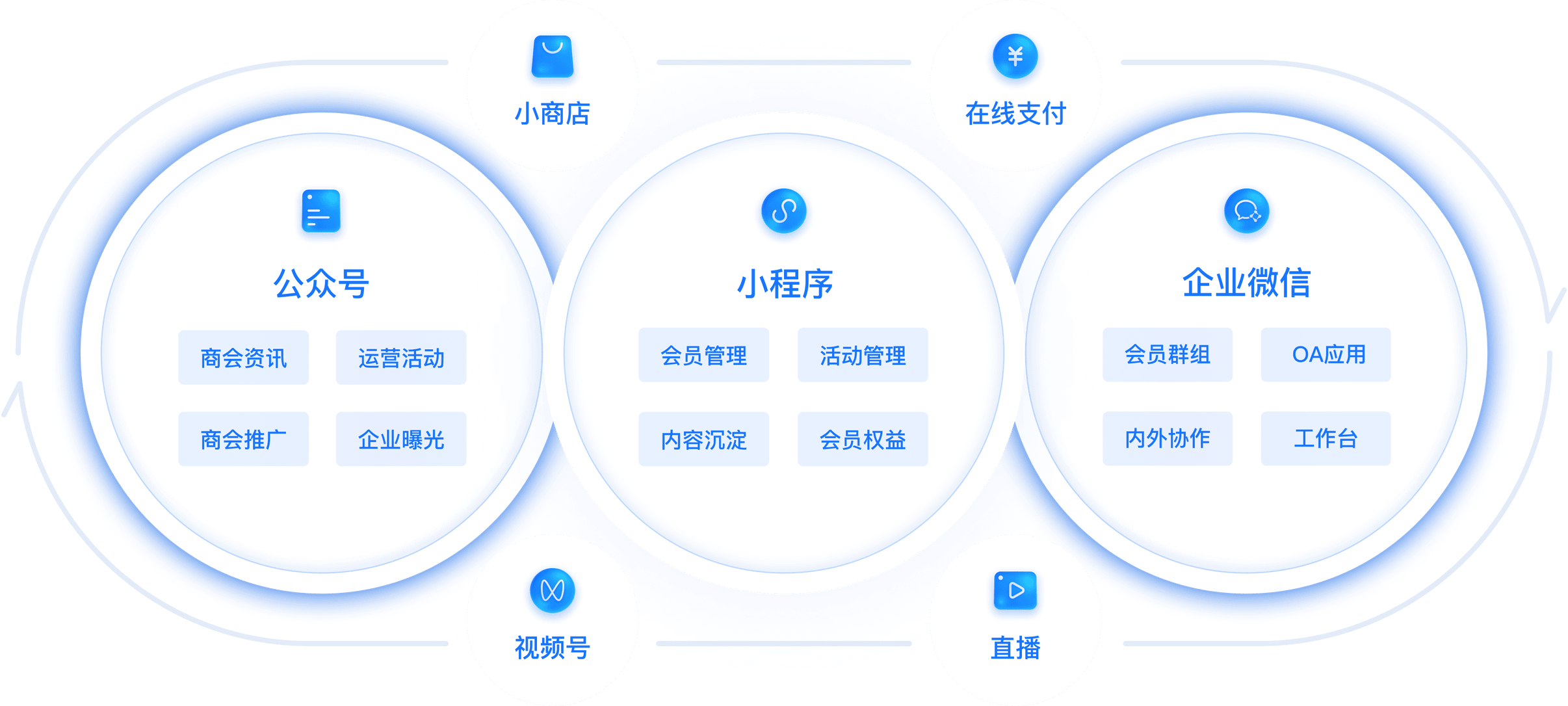 以互联网+的方式赋能传统组织,助力商协会数字化转型升级,实现平台化、工具化、信息化、数据化,帮助商协会降本增效,精细化服务会员